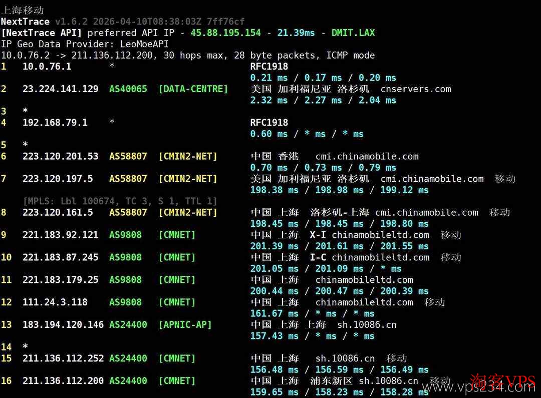 从路由上看,电信用户的去程路由由广州网口出发,直连洛杉矶机房,走163骨干网;联通用户则从北京网口发起,直达洛杉矶,走AS4837线路;而移动用户从上海出口,走CMI骨干网直连洛杉矶机房。