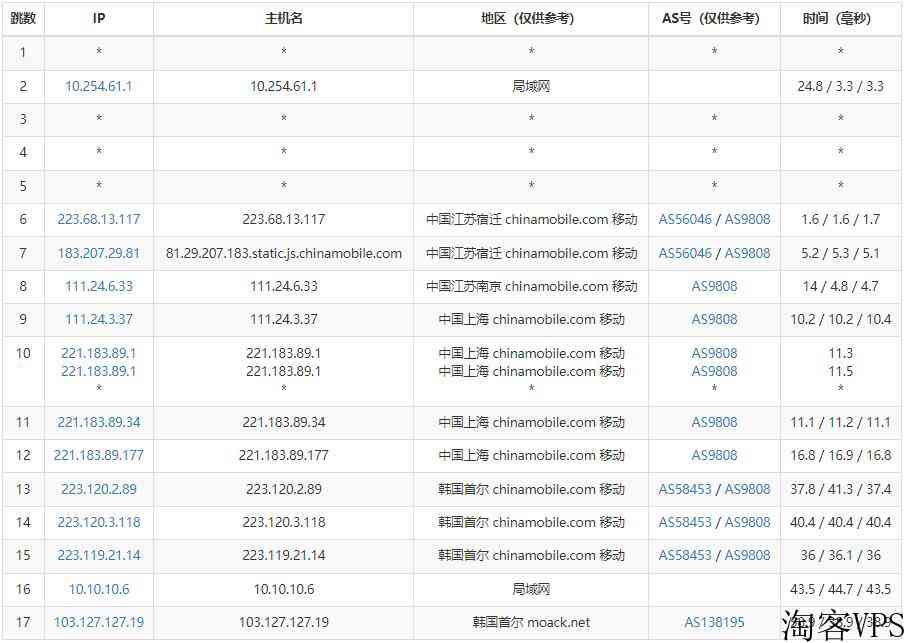 移动去程路由同样是从上海网口出去的,并且直连首尔机房。