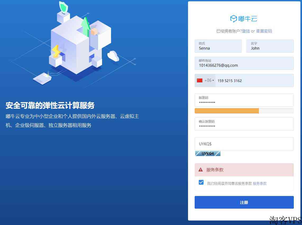 首先通过嘟牛云优惠链接进入官网,点击“注册”按钮注册一个账户: