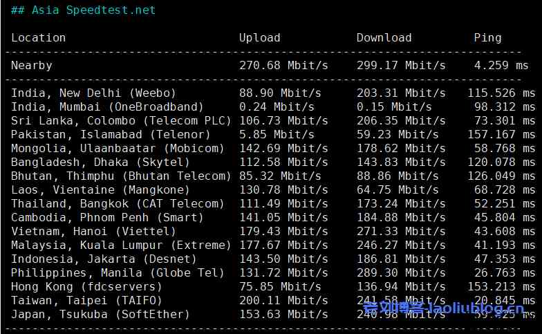 再跑几个国际节点看看,这里上行不到300Mbps、下行300Mbps;