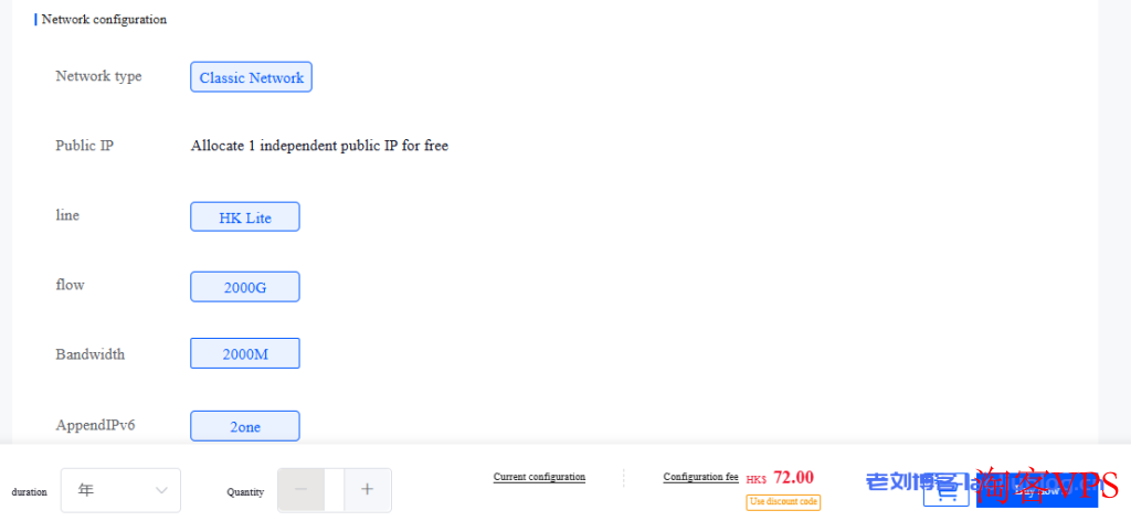 - 选择操作系统、付款周期等配置,确保选择带有原生IP说明的套餐。