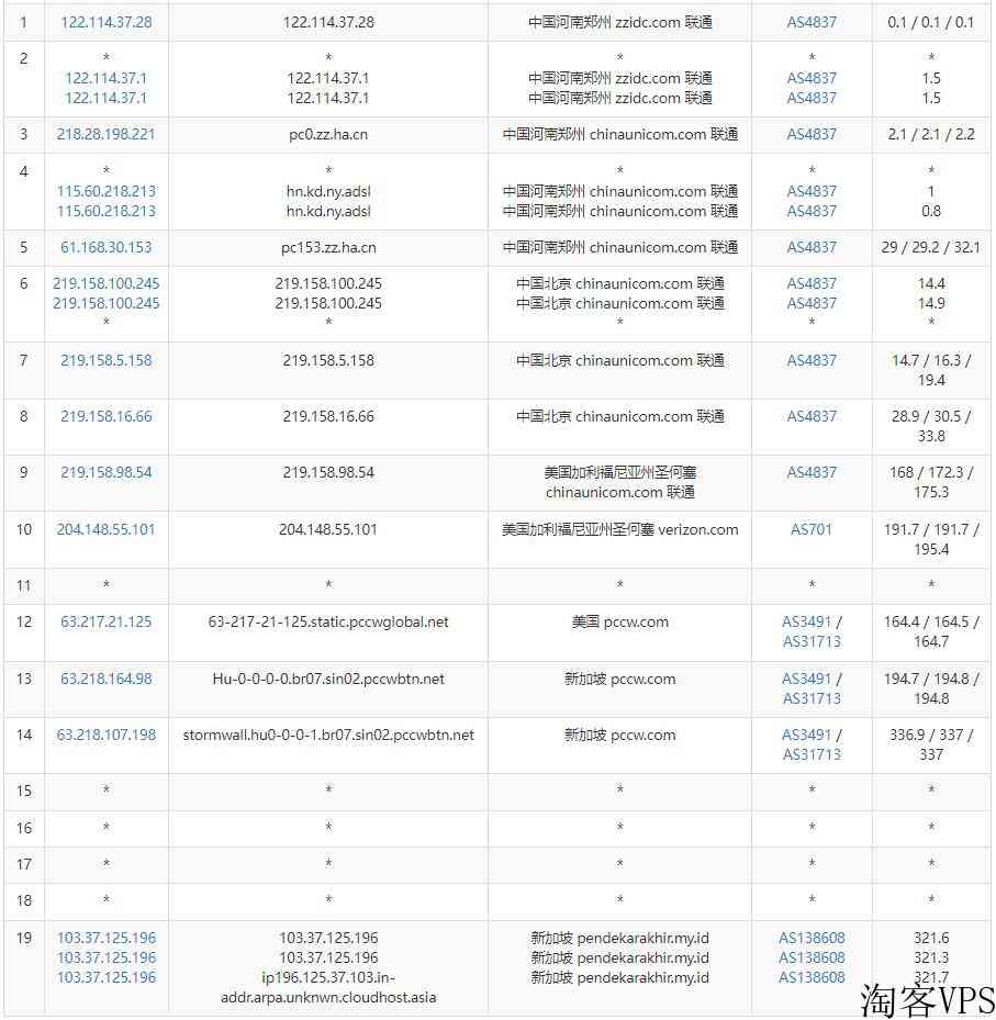 联通去程路由和电信差不多,也是从北京网口出去,经过圣何塞节点后到达新加坡机房。