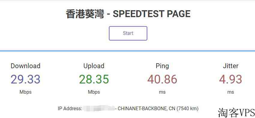 从在线速度测试上可以看到,上传和下载速度都超过了20Mbps,接近30Mbps了,对于香港VPS来说是相当不错的。