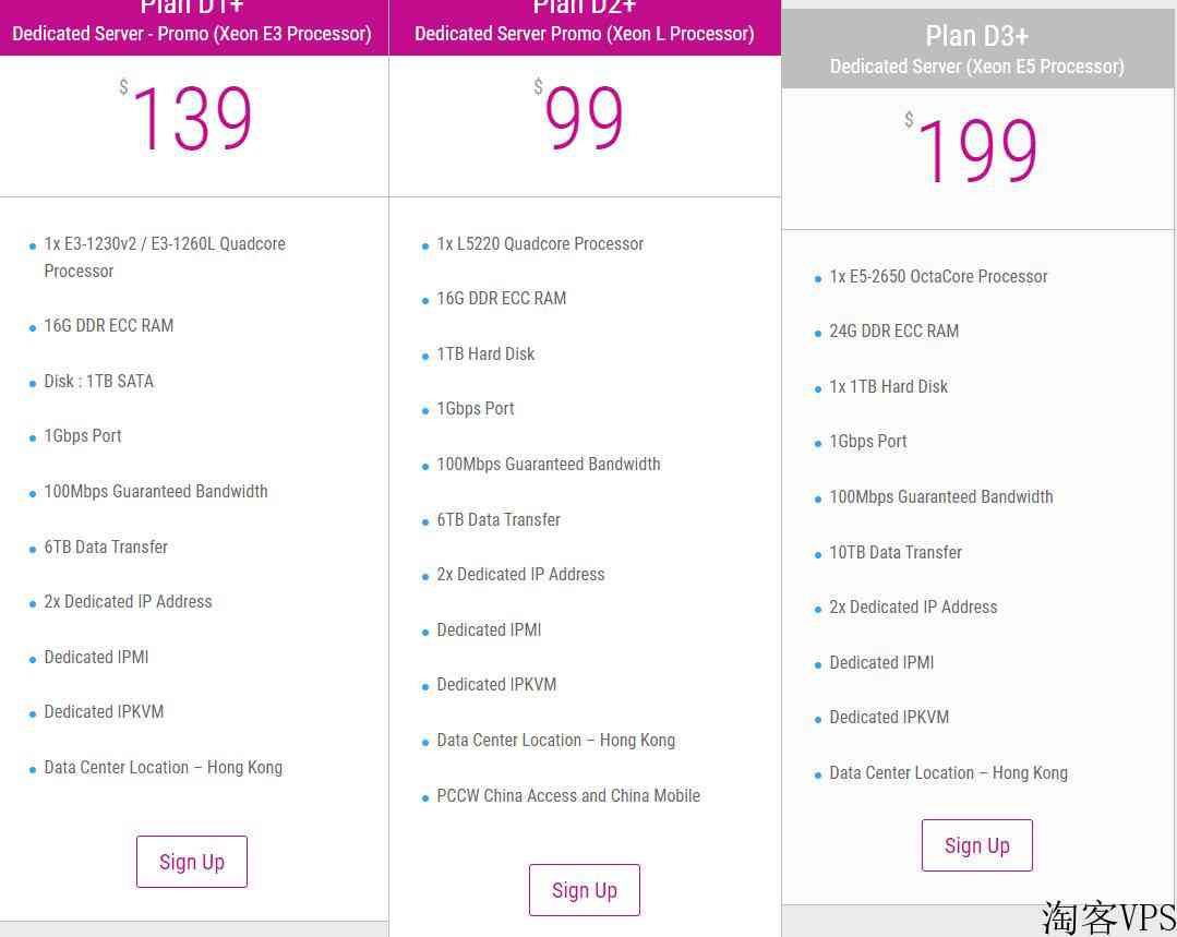 在高配置加持的条件下,最低价格只需要99美元/月,要知道这可是香港独立服务器,这个价格是相当的低了,而且还是支持多IP的,具体套餐如下所示: